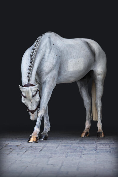 Bathe and fully dry, detangle mane/tail, clean tack, wipe eyes and nose, and dust-off right before we begin. Go easy on oils and sprays that streak or collect dust.