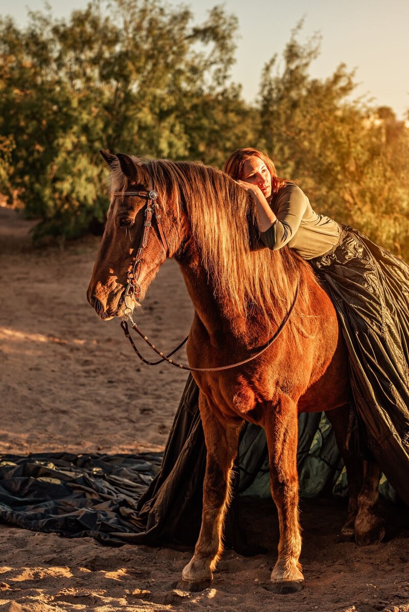 Working with me feels like being photographed by a bossy friend who adores your horse, I’ll tell you where to stand, what to do with your hands, when to breathe, and I’ll fix flyaway hair, shoo flies, and tweak reins so everything looks effortless while we keep things horse-first with plenty of breaks. We’ll roll between black-background elegance or golden light in the pasture, I’ll hype you up the whole time, and you’ll never wonder what to do next.